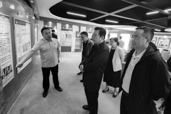 圖為平頂山市市場監(jiān)管局局長孫國權(quán)(前排右二)、副局長劉宏偉(前排右一)在河南質(zhì)量工程職業(yè)學院質(zhì)量文化館參觀。