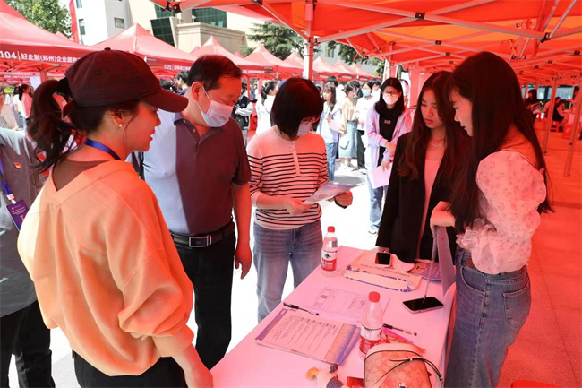 會場還專門設(shè)置了政策服務區(qū),由鄭州市公共就業(yè)人才服務中心提供就業(yè)創(chuàng)業(yè)政策咨詢、鄭州市人才公寓管理部門提供人才公寓申請政策咨詢、學生處提供大學生征兵工作咨詢、實習實訓中心提供實習政策咨詢、招生就業(yè)處提供就業(yè)政策咨詢等,實現(xiàn)“一站式”就業(yè)服務。