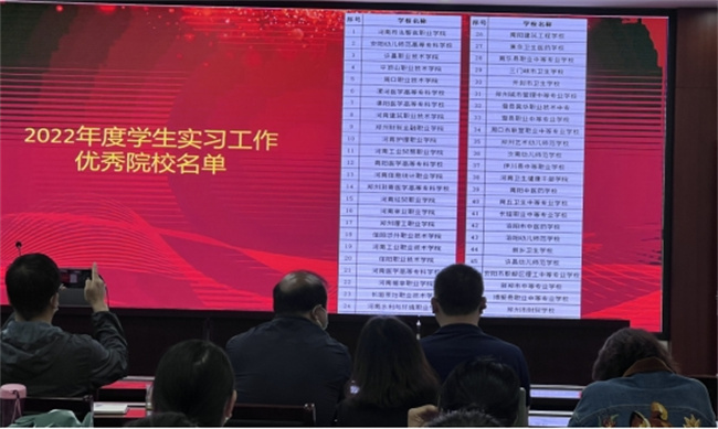 會上,省教育廳職成教處副處長王凱作重要講話,內(nèi)容涉及分析各職業(yè)學(xué)校實習(xí)管理工作開展情況、職業(yè)院校實習(xí)管理以案促改工作情況總結(jié),并安排2023-2024年河南省職業(yè)院校學(xué)生實習(xí)有關(guān)工作。省教育廳職成教處蔡崇宣讀了2022年度河南省職業(yè)院校學(xué)生實習(xí)工作優(yōu)秀院校名單,該院榮獲“2022年度河南省職業(yè)院校學(xué)生實習(xí)工作優(yōu)秀院校”榮譽稱號。