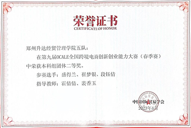 鄭州升達經(jīng)貿(mào)管理學院經(jīng)過兩個月的組織與準備,最終選拔出兩支參賽隊伍代表學院參與此次比賽,由電子商務專業(yè)教師霍倩倩、裴香玉負責指導的兩支隊伍分別取得一等獎、二等獎的優(yōu)異成績。