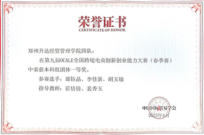 鄭州升達學院獲全國跨境電商大賽中獲一等獎