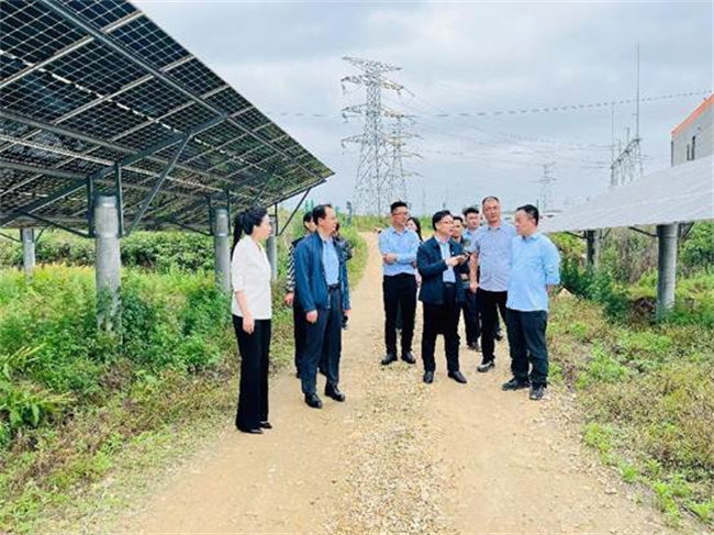 在項目工程人員帶領(lǐng)下,校長楊建華一行實地走訪了唐河光伏電站140兆瓦變電站和占地近三千畝的光伏板區(qū),對該光伏電站的設(shè)計、運(yùn)維情況,工人值守工作內(nèi)容、需要技能等情況進(jìn)行了詳細(xì)的詢問和了解。通過參觀交流,了解了光伏組件的相關(guān)參數(shù)、發(fā)電效率、發(fā)電影響因素、維護(hù)方式、經(jīng)濟(jì)效益和社會效益等內(nèi)容。