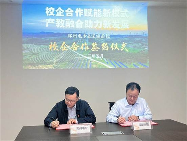 雙方在學(xué)生培養(yǎng)、就業(yè)推薦、職工培訓(xùn)、科研項目、技術(shù)攻關(guān)、專業(yè)建設(shè)等方面的合作進(jìn)行了深入的探討,并對如何推進(jìn)產(chǎn)學(xué)研深度融合、助力畢業(yè)生高質(zhì)量就業(yè)方面進(jìn)一步深化合作達(dá)成了共識,雙方簽訂了校企合作協(xié)議,并確定將深能南京能源控股有限公司唐河光伏電站定為學(xué)校教師企業(yè)實踐基地和學(xué)生實習(xí)基地。隨后,能源學(xué)院教工黨支部與深能南控河南黨支部簽訂了支部黨建聯(lián)創(chuàng)協(xié)議。