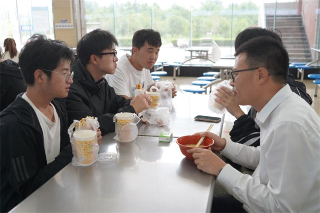 儀式結(jié)束后,胡昊、周志琦等與同學(xué)們共進早餐,并與大家親切交談。