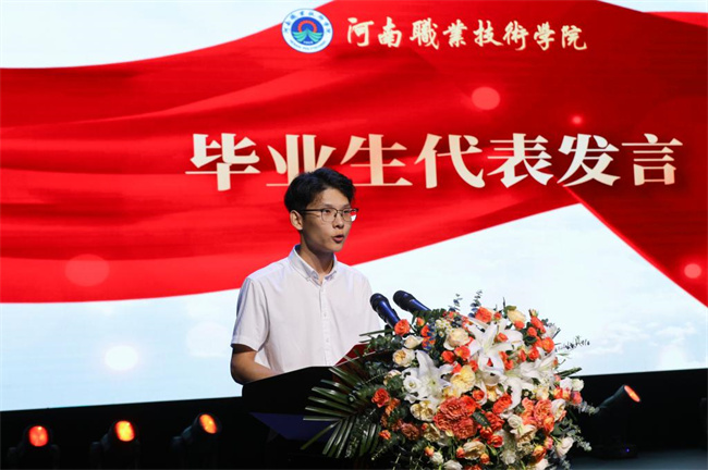 電子與物聯(lián)網(wǎng)學(xué)院孟榮恩代表畢業(yè)生發(fā)言,表達(dá)了對母校、老師和同學(xué)的感激之情,表示在河職度過的青春歲月將是人生中的寶貴回憶,將持續(xù)秉持“河職校訓(xùn)”和“河職精神”,用在校所學(xué),回饋社會,爭做一個胸懷大志并腳踏實地的人,成為一個富有責(zé)任并勇挑重?fù)?dān)的人。
