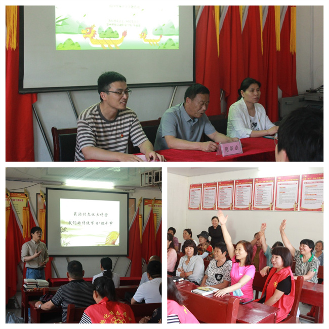 中新河南網(wǎng)6月21日電(王雨晴) 端午近,粽香飄。為弘揚中華優(yōu)秀傳統(tǒng)文化,踐行社會主義核心價值觀,深化農(nóng)村精神文明建設,激發(fā)新時代鄉(xiāng)村振興的文化活力,在端午節(jié)來臨之際,鄭州財稅金融職業(yè)學院于6月19日上午聯(lián)合新密市超化鎮(zhèn)莪溝村村民委會在莪溝村舉辦了端午節(jié)文化大講堂活動。駐村第一書記劉子印、基礎部副主任孫曉景、莪溝村黨總支書記范新法、基礎部教師代表、莪溝村村民等參加了本次活動,基礎部語文教研室主任李森主講,駐村工作隊李兆芃老師主持。