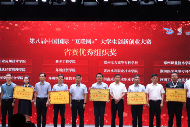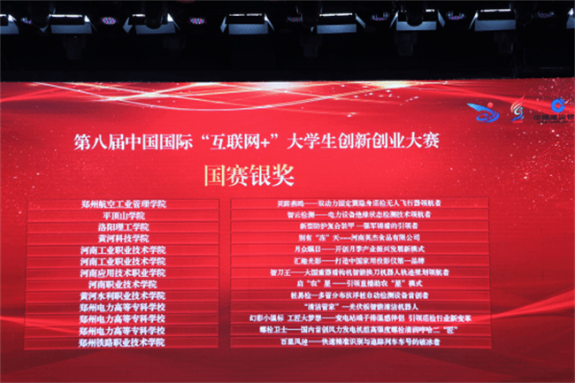 鄭州電力高等?茖W(xué)校黨委委員、副校長黃鵬代表鄭州電力高等?茖W(xué)校領(lǐng)取了“優(yōu)秀組織獎”,學(xué)校參賽的《螺栓衛(wèi)士—國內(nèi)首創(chuàng)風(fēng)力發(fā)電機(jī)組高強(qiáng)度螺栓清潤哼哈二“匠”》、《幻彩小溫標(biāo) 工匠大夢想—變電站端子排溫感伴侶 引領(lǐng)巡檢行業(yè)新變革》、《“清潔管家”—光伏板智能清潔機(jī)器人》等3個項(xiàng)目斬獲國賽銀獎,雷萊、賀莉、王迪等項(xiàng)目指導(dǎo)老師榮獲省賽“優(yōu)秀指導(dǎo)教師”,項(xiàng)目學(xué)生代表、老師在現(xiàn)場接受了上級表彰。