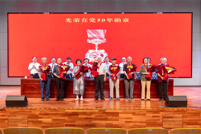 “光榮在黨50年”紀(jì)念章老黨員代表接授獎(jiǎng)?wù)卢F(xiàn)場(chǎng)