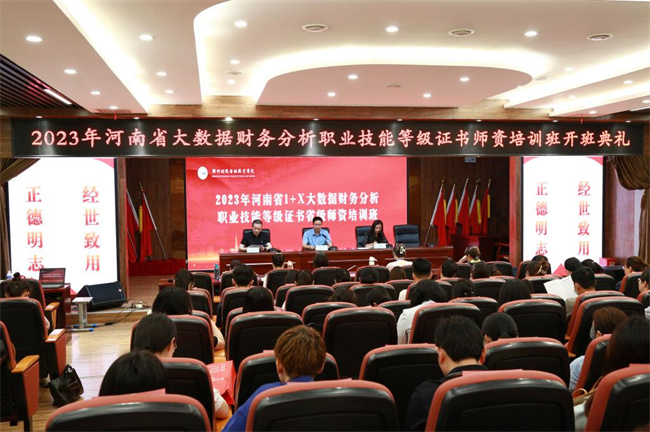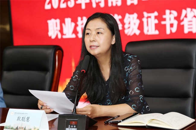河南省1+X證書制度試點工作協(xié)調(diào)推進辦公室副主任楊濤、教務(wù)處處長耿聰慧出席開班儀式,開班儀式由繼續(xù)教育學(xué)院院長靳偉主持。