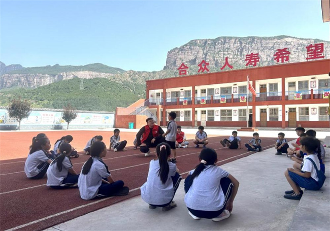 七月雨季頻發(fā),防汛是重點(diǎn)工作,專訪結(jié)束后,實(shí)踐團(tuán)在村民活動(dòng)廣場(chǎng)講解防溺水、防汛知識(shí),向村民分發(fā)自主設(shè)計(jì)的宣傳頁,并參與當(dāng)?shù)匮埠又驹阜⻊?wù)工作。