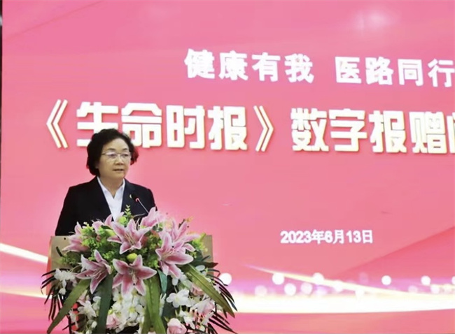 學(xué)校老科協(xié)會長徐玉芳教授在《生命時(shí)報(bào)》數(shù)字報(bào)贈(zèng)閱儀式上發(fā)言