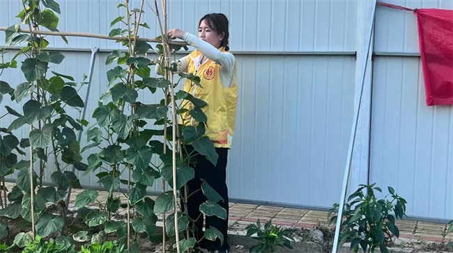 文雪珂同學(xué)查看蔬菜生長(zhǎng)情況