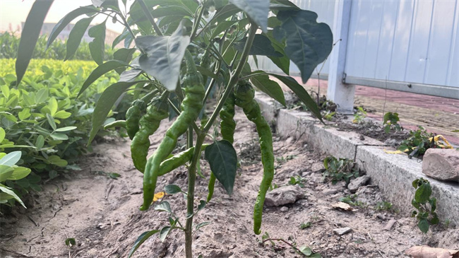 東川村生長(zhǎng)良好的線椒清掃村莊街道衛(wèi)生