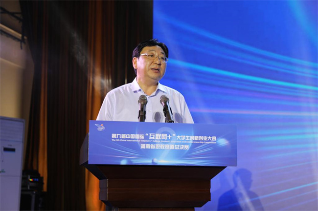 朱自鋒講話。他強(qiáng)調(diào),這個世界崇尚創(chuàng)新,要用大賽來發(fā)現(xiàn)創(chuàng)新創(chuàng)業(yè)人才。青年與創(chuàng)新創(chuàng)業(yè)的相遇應(yīng)該是人世間最美麗的相遇,必將釋放出無窮的思想之力、生命之力、創(chuàng)造之力。2015年開啟的中國國際“互聯(lián)網(wǎng)+”大學(xué)生創(chuàng)新創(chuàng)業(yè)大賽已經(jīng)成為全國覆蓋面最廣、影響力最大的大學(xué)生創(chuàng)新創(chuàng)業(yè)盛會,在深化創(chuàng)新創(chuàng)業(yè)教育改革,激發(fā)大學(xué)生創(chuàng)新潛能,激勵青年創(chuàng)業(yè)激情方面發(fā)揮了重要的引領(lǐng)作用。這個世界要不斷創(chuàng)新,要用機(jī)制來激發(fā)創(chuàng)新創(chuàng)業(yè)的活力。近年來,省委省政府始終把創(chuàng)新擺在發(fā)展的邏輯起點(diǎn),錨定“兩個確保”,將創(chuàng)新驅(qū)動、科教興省、人才強(qiáng)省戰(zhàn)略擺在“十大戰(zhàn)略”之首,開啟了現(xiàn)代化河南建設(shè)的新征程。要以本次大賽為契機(jī),為深化創(chuàng)新創(chuàng)業(yè)的教育改革增強(qiáng)活力,要不斷探索跨學(xué)科學(xué)習(xí)的新實(shí)踐、健全產(chǎn)學(xué)研合作的新機(jī)制。這個世界依靠創(chuàng)新,要用創(chuàng)新創(chuàng)業(yè)的激情點(diǎn)燃心中的夢想。希望各參賽團(tuán)隊(duì)和廣大青年學(xué)子更加自覺的把個人夢想融入到強(qiáng)國有我的偉大實(shí)踐,與經(jīng)濟(jì)社會發(fā)展同頻共振、同向而行。希望大家堅(jiān)定必勝的信念,把壓力轉(zhuǎn)化為動力,比出真功夫、賽出精神氣。