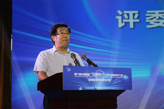 周保平致歡迎辭,簡要介紹了學(xué)校悠久的辦學(xué)歷史、鮮明的辦學(xué)特色、顯著的辦學(xué)成效及雙創(chuàng)工作的突出成績。學(xué)校高度重視創(chuàng)新創(chuàng)業(yè)工作,深入貫徹新發(fā)展理念,主動融入產(chǎn)業(yè)升級和國家創(chuàng)新驅(qū)動發(fā)展戰(zhàn)略,不斷加強(qiáng)創(chuàng)新創(chuàng)業(yè)工作頂層設(shè)計(jì),加強(qiáng)產(chǎn)學(xué)研轉(zhuǎn)創(chuàng)共同育人模式,通過多種方式培養(yǎng)學(xué)生的創(chuàng)新精神、創(chuàng)業(yè)意識和解決實(shí)際問題的能力。充分發(fā)揮各級各類雙創(chuàng)賽事的引領(lǐng)和承載作用,以賽促教、以賽促學(xué)、以賽促創(chuàng),大力培養(yǎng)師生“敢闖會創(chuàng)”的拼搏精神。學(xué)校堅(jiān)持產(chǎn)教融合、專創(chuàng)融合,不斷完善創(chuàng)新創(chuàng)業(yè)服務(wù)功能,著力打造區(qū)域性創(chuàng)新創(chuàng)業(yè)人才培養(yǎng)示范區(qū)和創(chuàng)新創(chuàng)業(yè)實(shí)踐基地,營造了“想創(chuàng)業(yè)、敢創(chuàng)業(yè)、會創(chuàng)業(yè)”良好的創(chuàng)新生態(tài)。近年來,學(xué)校獲得中國國際“互聯(lián)網(wǎng)+”大學(xué)生創(chuàng)新創(chuàng)業(yè)大賽國賽1金、3銀、8銅,省賽36金、58銀、59銅的佳績。她表示,在承辦過程中,學(xué)校將努力為各參賽隊(duì)的師生做好全方位服務(wù)工作,并嚴(yán)格按照競賽要求,公開、公平、公正地做好賽事組織工作。希望以此次大賽為契機(jī),在互學(xué)互鑒中汲取智慧,在取長補(bǔ)短中合作共贏。