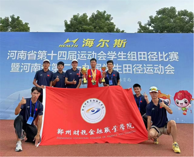鄭州財(cái)稅金融職業(yè)學(xué)院田徑隊(duì)共派出7名運(yùn)動員參賽,參與大學(xué)生組10個(gè)項(xiàng)目角逐。頂著烈烈炎日,冒著高溫酷暑,經(jīng)過激烈比拼,最終獲得男子專科組跳遠(yuǎn)第一名、4×100米接力第一名、4×400米接力第一名、100米第二名、400米和400米欄第四名,同時(shí)獲得?平M男子團(tuán)體總分第一名,團(tuán)體總分第五名。累計(jì)獲得三金一銀,實(shí)現(xiàn)了該院省大運(yùn)會金牌零的突破,創(chuàng)歷史最佳成績。