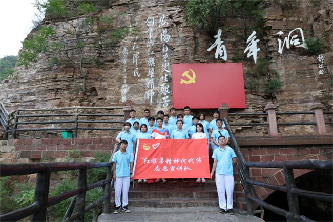 實踐分隊成員先后來到紅旗渠紀念館、分水閘和青年洞參觀學習。紅旗渠紀念館中,在講解員的帶領(lǐng)下成員們參觀了紀念館中珍貴的歷史文件及實物資料,共同回顧了上世紀60年代,勤勞勇敢的數(shù)十萬林縣人民僅憑一錘、一釬、兩只手而絕壁穿石、挖渠千里的十載苦戰(zhàn)歷程。從時任縣委書記楊貴同志決心帶領(lǐng)人民群眾重新安排林縣山河到紅旗渠主要設(shè)計師——校友吳祖泰把生命鐫刻在太行山,一幕幕可歌可泣的歷史故事和催人奮進的斗爭精神感動著在場的所有人。實踐隊員還通過走“紅飄帶”登“水長城”,見識了青年洞、創(chuàng)業(yè)洞、老虎崖,親身體驗修渠的艱辛不易,深刻感悟“自力更生、艱苦創(chuàng)業(yè)、團結(jié)協(xié)作、無私奉獻”的紅旗渠精神。同學們紛紛表示,從紅旗渠精神中汲取成長養(yǎng)分,砥礪奮進,當好紅旗渠精神的堅定傳承者,將青春熱血投入祖國建設(shè)的事業(yè)中,書寫無悔的時代華章。
