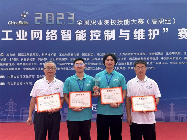 中新河南網(wǎng)8月24日電(陳俊寰) 8月14日至17日,2023年全國職業(yè)院校技能大賽“工業(yè)網(wǎng)絡(luò)智能控制與維護(hù)”賽項(xiàng)在內(nèi)蒙古包頭職業(yè)技術(shù)學(xué)院舉行,來自全國各省市76支學(xué)生組和55支教師組參賽隊(duì)分組競(jìng)技。經(jīng)過激烈角逐,河南職業(yè)技術(shù)學(xué)院智能制造學(xué)院王德芝、曹青松組成的參賽隊(duì)獲學(xué)生組一等獎(jiǎng),曹智軍、徐海兩位教師獲“優(yōu)秀指導(dǎo)教師”稱號(hào);陳俊寰、張玉廣組成的參賽隊(duì)獲教師組二等獎(jiǎng)。