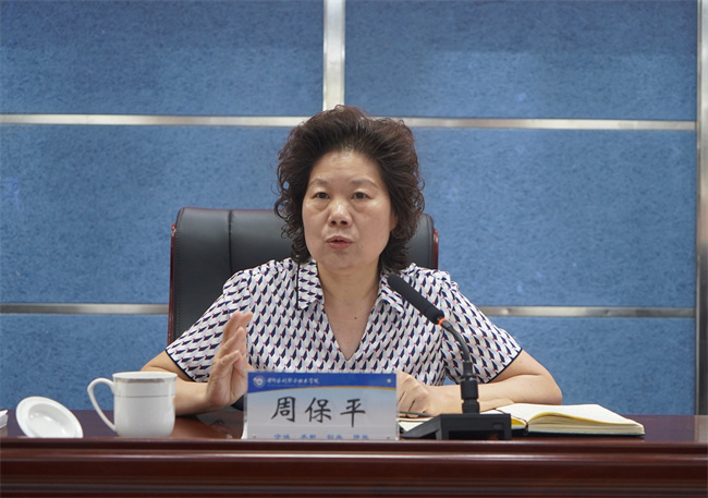 黨委書記周保平講話。她從深刻把握形勢、聚焦重點任務(wù)、提升政治站位三個方面,對新學(xué)期學(xué)校工作提出了明確要求,進行了全面部署:一要著眼發(fā)展大勢,奮力開拓學(xué)校事業(yè)高質(zhì)量發(fā)展新局面。要深刻領(lǐng)會政策要求、明確發(fā)展任務(wù),要搶抓發(fā)展機遇、做強特色優(yōu)勢,創(chuàng)新思路舉措、勇?lián)l(fā)展使命。二要聚焦重點任務(wù),在精準施策中積蓄學(xué)校發(fā)展動能。堅持對標對表高質(zhì)量完成“雙高”任務(wù),堅持精益求精高標準準備職業(yè)本科材料,堅持開拓創(chuàng)新高要求推進職業(yè)教育重點任務(wù)建設(shè)。三要提升政治站位,在擔(dān)當(dāng)盡責(zé)中匯聚學(xué)校發(fā)展合力。廣大黨員干部要強化黨性認識、提振精神狀態(tài)、切實擔(dān)當(dāng)實干、守牢安全底線、嚴守紀律規(guī)矩,創(chuàng)造風(fēng)清氣正的干事創(chuàng)業(yè)環(huán)境。面對新形勢、新機遇,她鼓勵大家要以只爭朝夕的拼勁、久久為功的韌勁,全力以赴抓好下半年工作,推動學(xué)校各項事業(yè)發(fā)展實現(xiàn)新突破、新跨越。