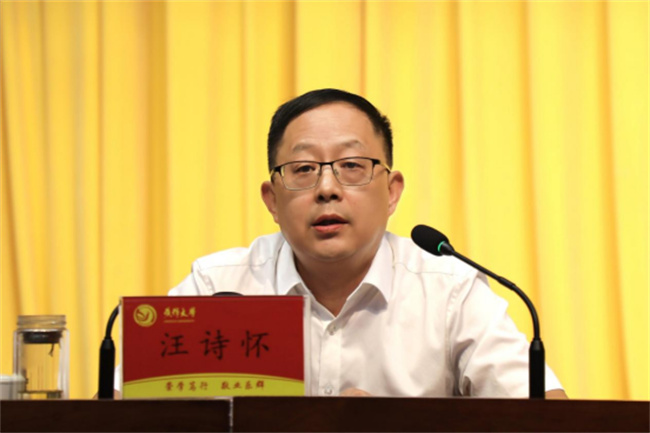 汪詩懷做了題為《觀大勢強(qiáng)重點(diǎn)轉(zhuǎn)作風(fēng)奮力推動(dòng)學(xué)校事業(yè)發(fā)展邁上新臺(tái)階》的講話。他指出,學(xué)校上半年的成績來之不易,離不開省委教育工委、省教育廳和市委、市政府的堅(jiān)強(qiáng)領(lǐng)導(dǎo),離不開學(xué)校領(lǐng)導(dǎo)班子成員的示范帶動(dòng),離不開全校黨員干部和廣大教職員工的默默奉獻(xiàn)。針對(duì)下半年工作乃至今后的發(fā)展,汪詩懷要求:一是認(rèn)清形勢聚共識(shí),增強(qiáng)干事創(chuàng)業(yè)的責(zé)任感和緊迫感。對(duì)標(biāo)教育強(qiáng)國、教育強(qiáng)省、職業(yè)教育發(fā)展要求,辯證、客觀分析形勢,查找自身發(fā)展不足,搶抓發(fā)展機(jī)遇,凝聚發(fā)展共識(shí)。二是聚焦重點(diǎn)求實(shí)效,全面推進(jìn)學(xué)校事業(yè)發(fā)展上臺(tái)階開新局。要抓黨建,用高質(zhì)量黨建引領(lǐng)和保障學(xué)校事業(yè)的高質(zhì)量發(fā)展;要抓根本,加強(qiáng)思想政治教育;要抓重點(diǎn),高質(zhì)量完成年度目標(biāo)任務(wù);要抓合作,構(gòu)筑產(chǎn)教融合新生態(tài);要抓關(guān)鍵,積極推動(dòng)師資隊(duì)伍建設(shè);要抓穩(wěn)定,落實(shí)好安全穩(wěn)定責(zé)任制;要抓廉政,筑牢廉潔防線。三是轉(zhuǎn)變作風(fēng)抓落實(shí),推動(dòng)形成干事創(chuàng)業(yè)新氣象新風(fēng)貌。要旗幟鮮明講政治,要有大局觀、加強(qiáng)學(xué)習(xí)思考、解決實(shí)際問題;要銳意進(jìn)取抓創(chuàng)新,面對(duì)新形勢新變局必須創(chuàng)新思維、迎頭趕上;要實(shí)干立身強(qiáng)能力,要強(qiáng)學(xué)習(xí)、重實(shí)踐;要立足崗位求務(wù)實(shí),做到緊盯不放、迎難而上、雷厲風(fēng)行及高標(biāo)準(zhǔn)要求。