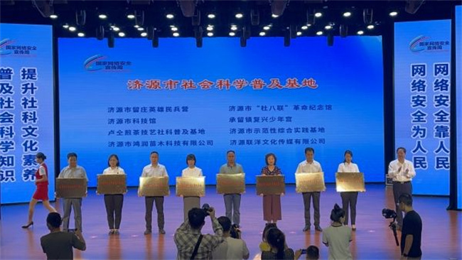 中新河南網(wǎng)9月14日電(姜小軍) 9月11日,濟(jì)源示范區(qū)舉行2023年國(guó)家安全宣傳周濟(jì)源示范區(qū)活動(dòng)開幕式暨網(wǎng)絡(luò)文明大會(huì)、示范區(qū)社科普及周啟動(dòng)儀式,濟(jì)源職業(yè)技術(shù)學(xué)院榮獲濟(jì)源示范區(qū)網(wǎng)絡(luò)素養(yǎng)教育基地、盧仝煎茶技藝社科普及基地,醫(yī)學(xué)護(hù)理學(xué)院趙蕾娜、馬克思主義學(xué)院鄭太升榮獲濟(jì)源市社科優(yōu)秀普及宣傳員稱號(hào)。