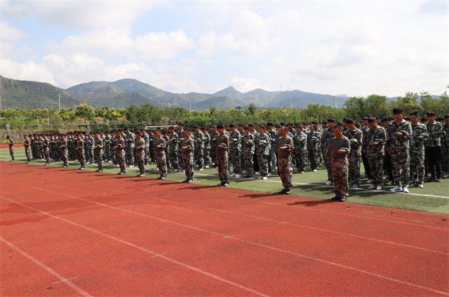 在軍訓現場,教官講解“九一八”事變的影響,隨著防空警報響起,現場集體默哀三分鐘,致敬先烈,不忘歷史!