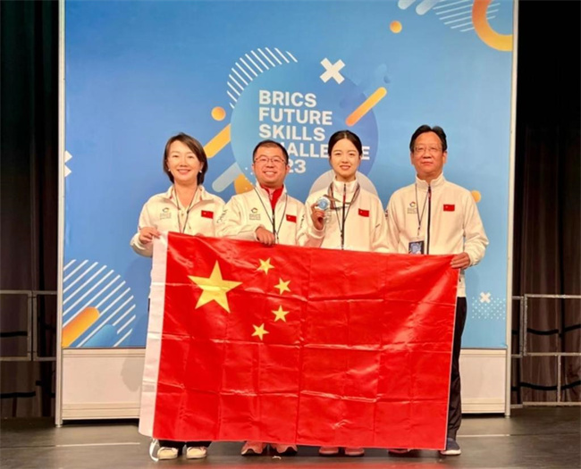 賽場上,王曉丹老師克服比賽強度大、時間要求緊等困難和挑戰(zhàn),與來自金磚五國的參賽隊伍同臺競技,經(jīng)過三天激烈地角逐,以精彩的作品和扎實的技能在國際賽場上展示了中國風采,獲得銀牌,代表學校站上世界級技能比賽的領(lǐng)獎臺。