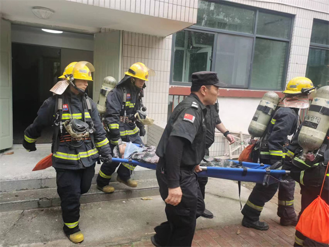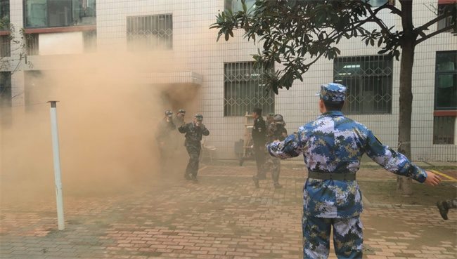 隨后,學(xué)校組織開展了應(yīng)急疏散逃生演練,演練假設(shè)學(xué)校宿舍樓發(fā)生火災(zāi),學(xué)校迅速啟動(dòng)應(yīng)急預(yù)案,各值班崗位迅速到位,緊急通知學(xué)生疏散逃生,同學(xué)們從學(xué)生宿舍安全出口有序疏散逃生。疏散中,同學(xué)們用濕毛巾捂住口鼻,彎腰低姿快速撤離到運(yùn)動(dòng)場,整個(gè)疏散過程安全有序、快速高效。在清點(diǎn)人員時(shí)發(fā)現(xiàn)二公寓2218宿舍一名男生被困宿舍未能安全撤離,隨后消防車趕到,開始滅火救援,最后被困人員被安全救出。
