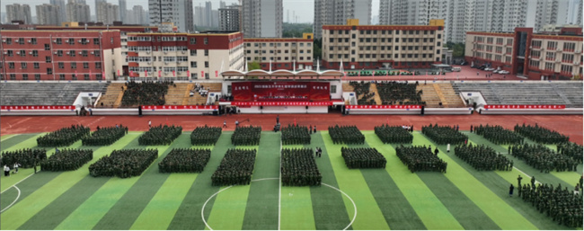 隨后,鄭州市管城區(qū)區(qū)委常委管城區(qū)人武部政委李勇代表管城區(qū)人武部向同學們致以真摯的問候,李政委勉勵同學們厚植家國情懷,在中華民族偉大復興的征途中踐行初心、激揚青春。同時號召同學們牢記人民軍隊的優(yōu)良傳統(tǒng)和作風,鞏固和深化軍訓成果,勤奮學習,全面發(fā)展,成為德智體美勞全面發(fā)展的社會主義建設者和接班人。