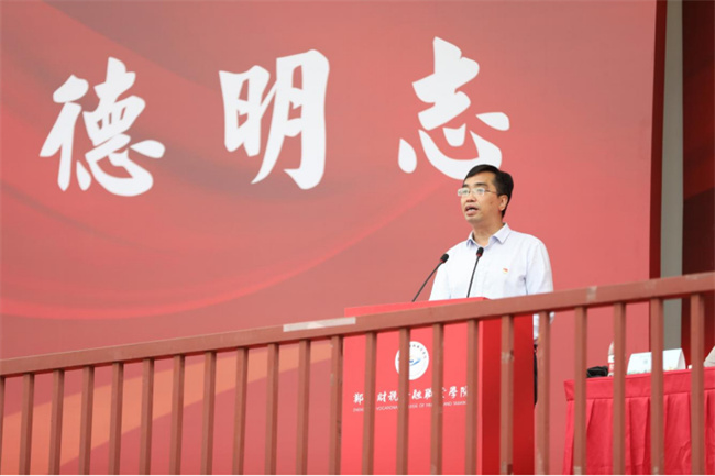 最后,院長李曉東作開學致辭。李院長代表學校向全體新同學表示熱烈歡迎和衷心的祝賀,同時以《匠心筑夢,篤行致遠》為題對鄭財院學子提出殷切希望:一是希望同學們正德明志,爭做堪當大任的時代新人;二是希望同學們求知篤行,爭做勤奮好學的學習達人;三是希望同學們經(jīng)世致用,爭做本領(lǐng)過硬的匠師能人;四是希望同學們熱愛生活,爭做全面發(fā)展的優(yōu)秀全人。立德立志,久久為功,李院長表示,學院和全體教師將全力以赴培養(yǎng)同學們成人成才,讓每一位鄭財院學子都堅定信念感悟家國情懷、創(chuàng)新實干書寫奮斗人生、勇?lián)姑`行青春誓言,努力成長為有理想、敢擔當、能吃苦、肯奮斗的新時代好青年!