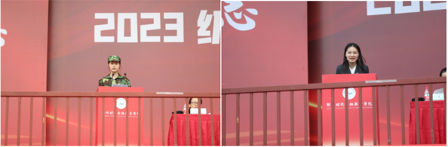 2023級新生代表朱爰霏、輔導員代表閆雨婷發(fā)言