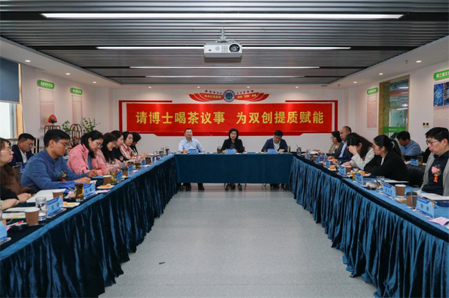 中新河南網(wǎng)10月8日電(尹霞) 9月28日下午,河南職業(yè)技術(shù)學(xué)院在創(chuàng)業(yè)孵化園召開(kāi)首次博士請(qǐng)茶會(huì),就如何推進(jìn)科教產(chǎn)學(xué)創(chuàng)融匯和探索創(chuàng)新型職業(yè)教育人才培養(yǎng)新路徑進(jìn)行座談。校黨委書(shū)記李桂貞、副校長(zhǎng)任楓軒出席座談會(huì),人事處、創(chuàng)新創(chuàng)業(yè)中心相關(guān)負(fù)責(zé)人和30名博士參會(huì)。任楓軒主持會(huì)議。