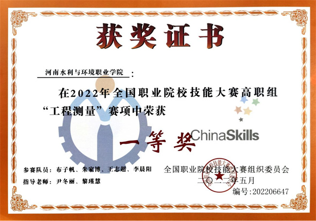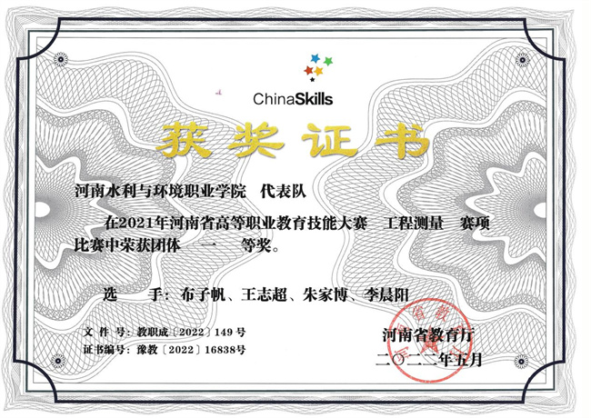 從盛夏一直訓(xùn)練到寒冬,長時(shí)間高強(qiáng)度訓(xùn)練,使我們身心都疲憊不堪,但是想到過去的這幾個(gè)月時(shí)間中隊(duì)友之間的密切配合,以及老師們的關(guān)心和教導(dǎo),心中充滿了對(duì)未來的期待。2021年12月,我們站在了河南省高等職業(yè)教育技能大賽“工程測(cè)量”賽項(xiàng)的賽場(chǎng)上,同來自全省各院校的35支代表隊(duì)同臺(tái)競(jìng)技。經(jīng)過緊張有序的比賽,我和隊(duì)友從各參賽隊(duì)中脫穎而出,最終榮獲該賽項(xiàng)一等獎(jiǎng),并獲得了代表河南省參加“國賽”的資格。