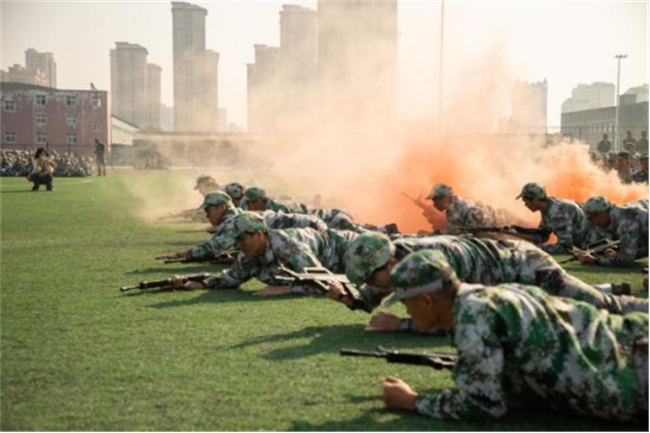 在莊嚴(yán)的升國(guó)旗儀式后,校黨委書記汪詩(shī)懷檢閱軍訓(xùn)方隊(duì)。受訓(xùn)方隊(duì)進(jìn)行分列式展示。同學(xué)們整齊的步伐、嘹亮的口號(hào)、高昂的斗志展示了軍訓(xùn)的優(yōu)秀成果和積極進(jìn)取、奮發(fā)向上的精神風(fēng)貌,贏得了現(xiàn)場(chǎng)師生的陣陣掌聲。隨后進(jìn)行的軍訓(xùn)節(jié)目匯報(bào)表演內(nèi)容豐富、形式新穎,為會(huì)操演練增添了樂(lè)趣與品味,贏得了現(xiàn)場(chǎng)師生的陣陣喝彩。