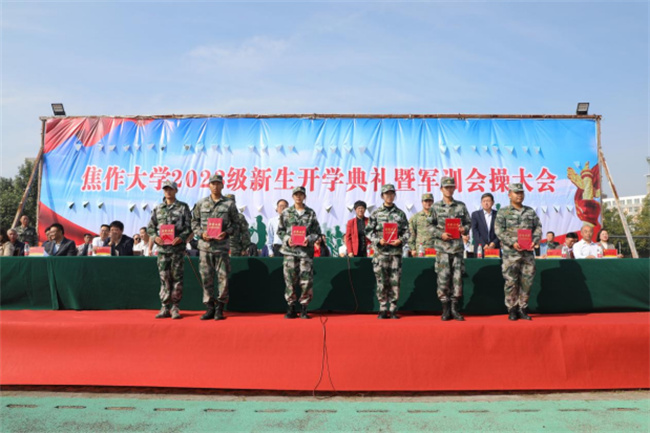 隨后,新生代表、在校生代表、教師代表先后發(fā)言。校黨委委員、副校長(zhǎng)劉際平宣讀了《焦作大學(xué)關(guān)于表彰2023級(jí)軍訓(xùn)工作先進(jìn)集體、先進(jìn)個(gè)人的決定》。校領(lǐng)導(dǎo)和部隊(duì)首長(zhǎng)為軍訓(xùn)工作先進(jìn)集體、優(yōu)秀教官、優(yōu)秀指導(dǎo)員代表頒獎(jiǎng),山陽(yáng)區(qū)武裝部部長(zhǎng)黃應(yīng)龍作了講話。