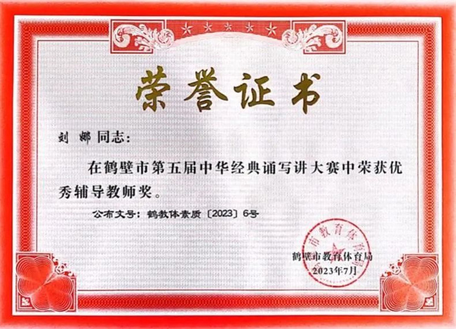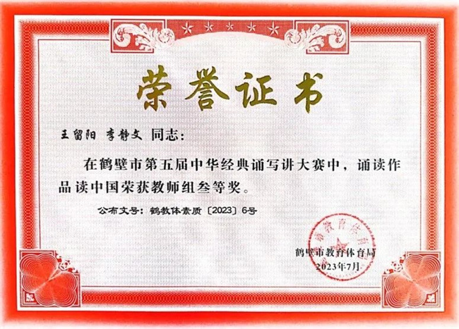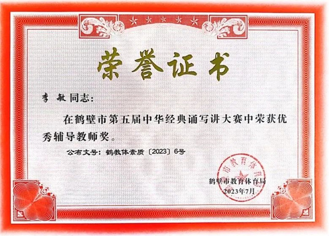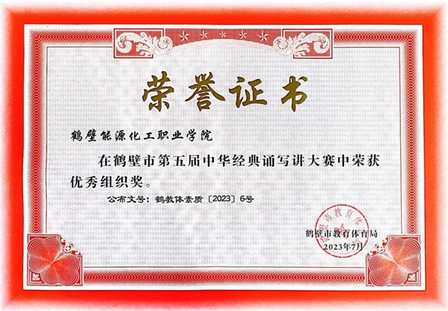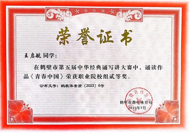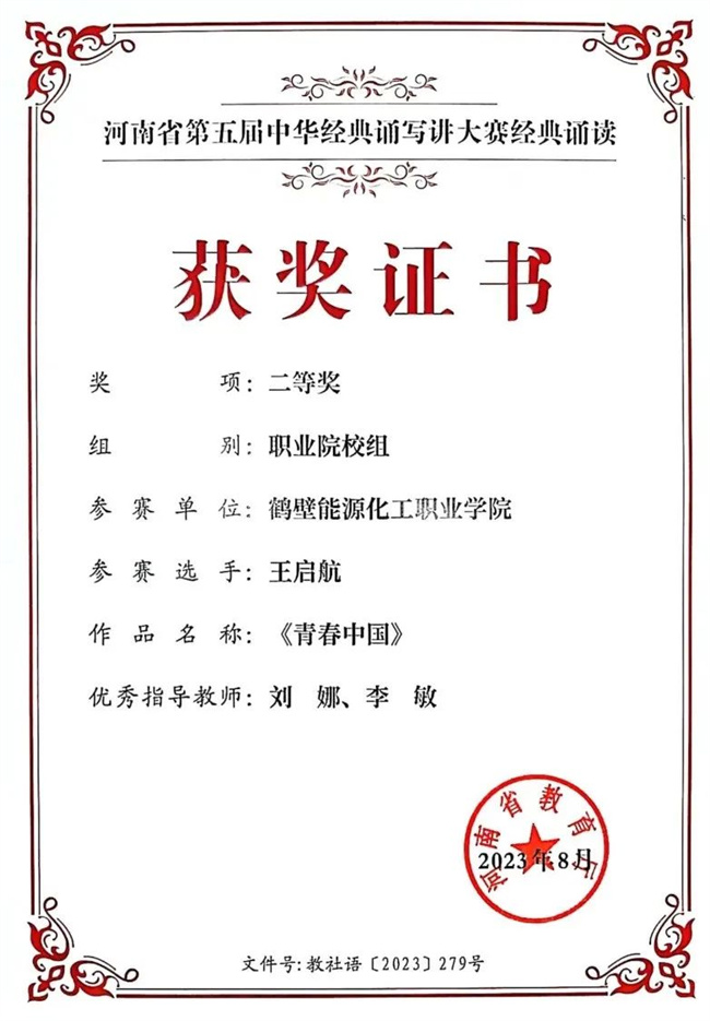 鶴壁能源化工職業(yè)學(xué)院在2023年第五屆中華經(jīng)典誦寫講大賽中獲得佳績