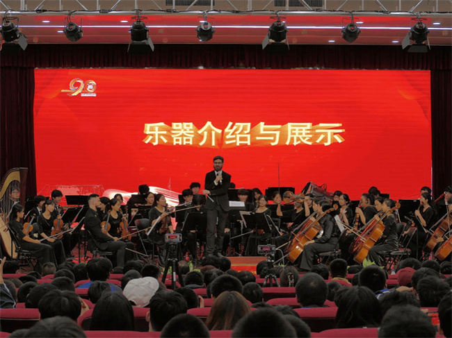 中新河南網(wǎng)10月28日電(阿依古麗·艾力江) 秋風(fēng)送爽、丹桂飄香。為慶祝鄭州電力高等?茖W(xué)校建校90周年,推動高雅藝術(shù)進(jìn)校園,提高學(xué)生審美和人文素養(yǎng),10月24日,學(xué)校特邀河南機電職業(yè)學(xué)院知行交響樂團,在在校學(xué)生中心東階梯教室舉辦了“九秩弦歌憶芳華 謹(jǐn)懷光明向未來” —慶祝學(xué)校建校90周年交響音樂會。學(xué)校紀(jì)委書記、工會主席武予然,副校長黃鵬出席音樂會。