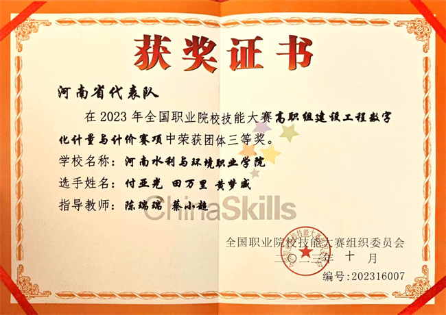 2023年,河南水利與環(huán)境職業(yè)學(xué)院各參賽隊(duì)伍代表河南省參加全國(guó)職業(yè)院校技能大賽,斬獲團(tuán)體一等獎(jiǎng)2項(xiàng)、團(tuán)體三等獎(jiǎng)2項(xiàng)。其中,在地理空間信息采集與處理賽項(xiàng)中,河南水利與環(huán)境職業(yè)學(xué)院已是四獲一等獎(jiǎng);在新增賽項(xiàng)水利工程BIM建模與應(yīng)用賽項(xiàng)中,學(xué)校首次參加國(guó)賽獲得一等獎(jiǎng);在建筑工程識(shí)圖賽項(xiàng)和建設(shè)工程數(shù)字化計(jì)量與計(jì)價(jià)賽項(xiàng)中,學(xué)校都實(shí)現(xiàn)了獎(jiǎng)項(xiàng)突破,充分展現(xiàn)了學(xué)校的綜合辦學(xué)實(shí)力和良好育人成績(jī),是多年來(lái)學(xué)校堅(jiān)持“質(zhì)量?jī)?yōu)先、內(nèi)涵發(fā)展”戰(zhàn)略的集中體現(xiàn)。