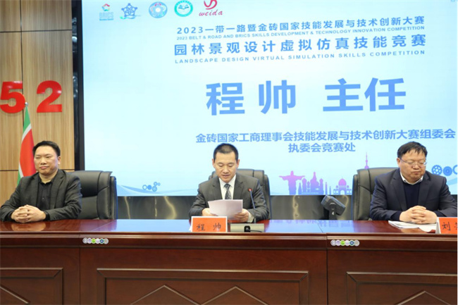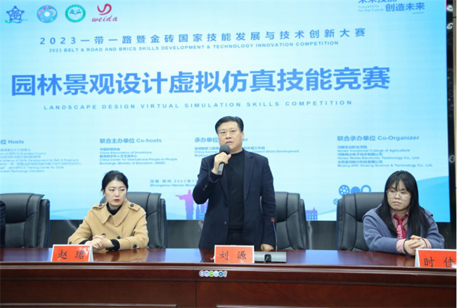 黨委書記劉源宣布“一帶一路”暨金磚國家技能發(fā)展與技術(shù)創(chuàng)新大賽園林景觀設(shè)計虛擬仿真技能賽項開幕。