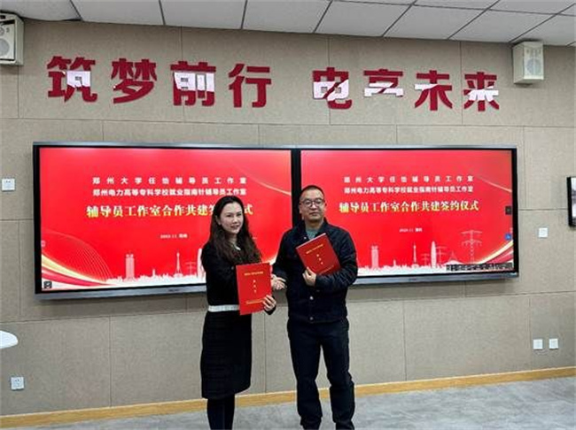 最后,鄭州大學(xué)任怡輔導(dǎo)員工作室與鄭州電力高等?茖W(xué)校就業(yè)指南針輔導(dǎo)員工作室進(jìn)行了合作共建簽約,將進(jìn)一步深化兩校合作,推進(jìn)兩校輔導(dǎo)員工作室建設(shè)。