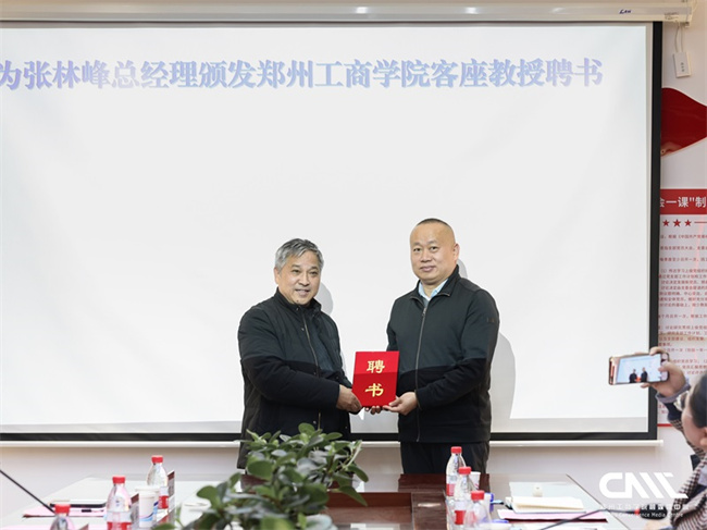 秦方奇為張林峰頒發(fā)客座教授聘書