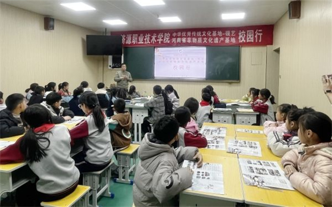 中新河南網(wǎng)11月30日電(鄭麗偉) 2023年11月28日,濟(jì)源職業(yè)技術(shù)學(xué)院到濟(jì)源軹城鎮(zhèn)中王中心小學(xué)開展“中華優(yōu)秀傳統(tǒng)文化-硯藝”校園行活動,普及天壇硯文化,推進(jìn)中華優(yōu)秀傳統(tǒng)文化—硯藝的傳承創(chuàng)新。河南省非物質(zhì)文化遺產(chǎn)研究基地指導(dǎo)老師及硯藝創(chuàng)新實踐工作坊成員參與活動。