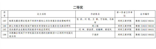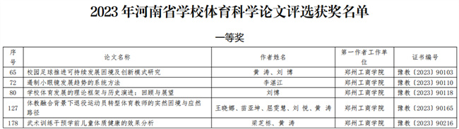 鄭州工商學院在“河南省學校體育科研論文征集”中喜獲佳績