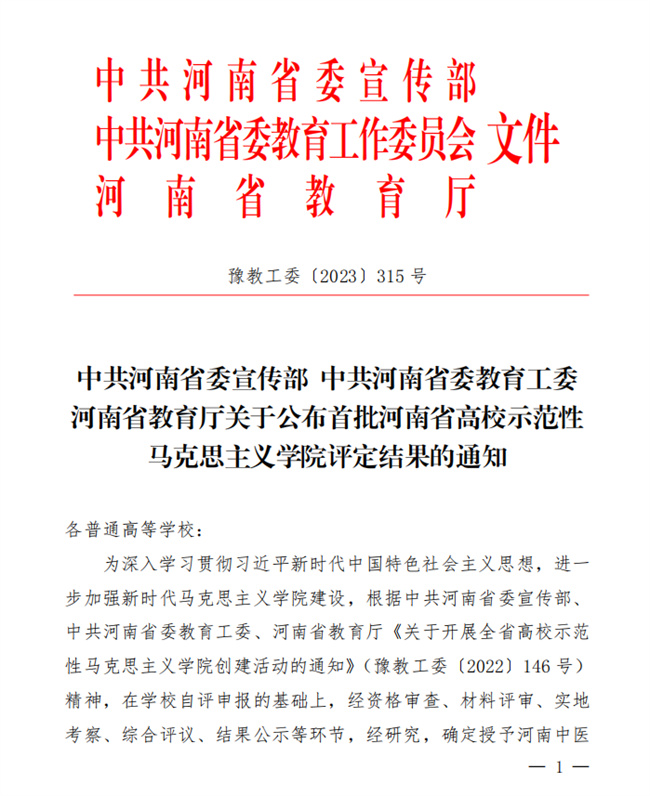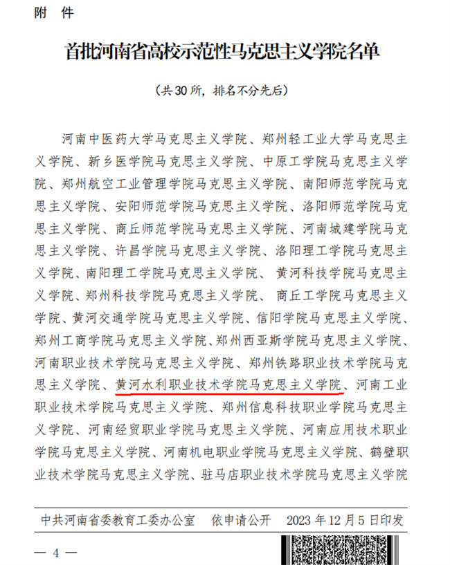 此項(xiàng)評(píng)選由中共河南省委宣傳部、中共河南省委教育工委、河南省教育廳發(fā)起,在百余所學(xué)校自評(píng)申報(bào)的基礎(chǔ)上,經(jīng)資格審查、材料評(píng)審、實(shí)地考察、綜合評(píng)議等環(huán)節(jié),按照分類評(píng)審原則,綜合考慮院校差異和工作實(shí)績(jī),報(bào)評(píng)審委員會(huì)同意,最終授予30所高校馬克思主義學(xué)院“河南省示范性馬克思主義學(xué)院”稱號(hào),其中高職(?)院校共10所入圍。