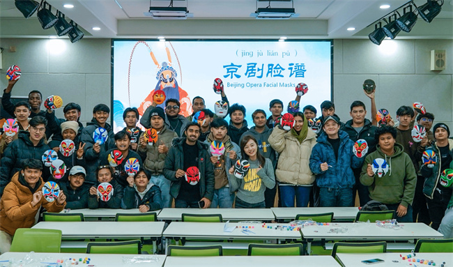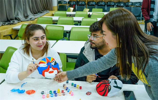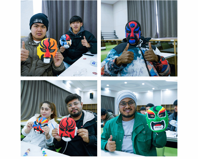 在老師的指導(dǎo)下,同學(xué)們發(fā)揮想象力將京劇臉譜與創(chuàng)意相結(jié)合,在白色面具上一筆一畫勾勒人物的特征,填充上自己喜歡的顏色,現(xiàn)場(chǎng)其樂融融,同學(xué)們?cè)跉g聲笑語中完成獨(dú)一無二的臉譜作品。Nazmul同學(xué)表示,這是他來中國第一次接觸京劇和京劇臉譜,他很喜歡中國文化,希望以后在課堂上有更多的機(jī)會(huì)體驗(yàn)中國傳統(tǒng)藝術(shù),他會(huì)把學(xué)到的中國傳統(tǒng)文化帶回孟加拉。