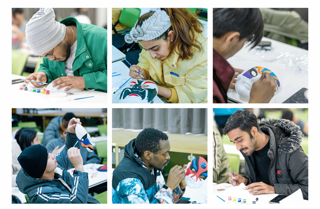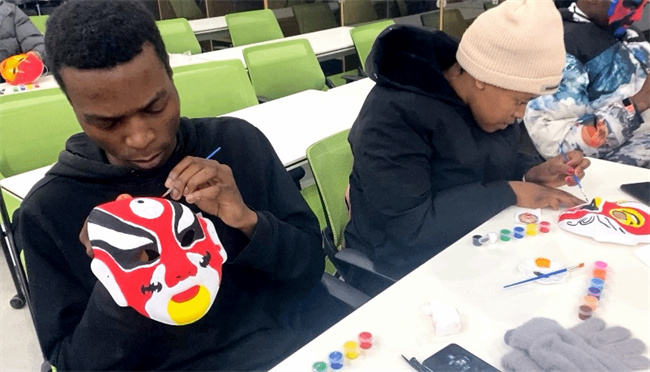 12月19日,這些來自泰國、巴基斯坦、津巴布韋等國的留學(xué)生們?cè)谒囆g(shù)鑒賞課堂上,隨著張揚(yáng)揚(yáng)老師的講解,不僅了解到京劇臉譜的由來、興盛、內(nèi)涵以及“中國正五色”白、藍(lán)、黑、紅、黃所代表的京劇典型人物等知識(shí),而且在白色面具上手繪五顏六色圖案,親手制作一張張紅、藍(lán)、紫、金色的精美“戲劇臉譜”,感受中國傳統(tǒng)文化的博大精深。