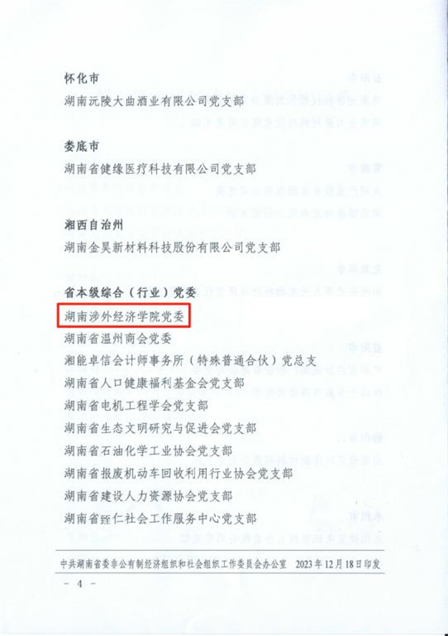 湖南涉外經(jīng)濟(jì)學(xué)院黨委被評(píng)為“2023年全省兩新領(lǐng)域標(biāo)桿黨組織”