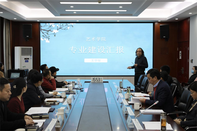 藝術(shù)學(xué)院院長王學(xué)俊作專業(yè)建設(shè)匯報(bào)會上,專家們圍繞專業(yè)特色建設(shè)、教材建設(shè)、產(chǎn)教融合等方面進(jìn)行研討交流。