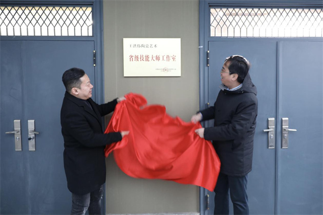 與會專家研討李曉東在陶瓷實(shí)訓(xùn)基地為“王洪偉陶瓷大師工作室”揭牌