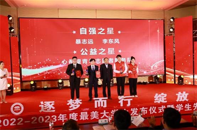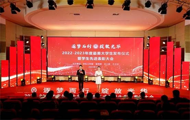 此次活動以“逐夢而行 綻放光華”為主題,開場題為《砥礪奮發(fā)有為 花開大美學(xué)工》的短片,集中展現(xiàn)了2023年鄭州電力高等?茖W(xué)校學(xué)生工作領(lǐng)域取得的一系列來之不易的成績;顒蝇F(xiàn)場公布了鄭州電力高等專科學(xué)校2022-2023學(xué)年學(xué)生先進(jìn)集體和先進(jìn)個人表彰文件,鄭州電力高等?茖W(xué)校領(lǐng)導(dǎo)為先進(jìn)集體和先進(jìn)個人代表頒獎。在最美大學(xué)生獲得者發(fā)布儀式上,以“勵·篤學(xué)”“創(chuàng)·奮斗”和“志·擔(dān)當(dāng)”為主題的三個篇章,依次呈現(xiàn)了學(xué)習(xí)之星李耀祖、范麗佳、文體之星孫宇、創(chuàng)新之星桂浩、魏思淇、金炯炯、自強(qiáng)之星暴志遠(yuǎn)、李東風(fēng)、公益之星心希望青年志愿者服務(wù)隊等9位最美大學(xué)生的青春風(fēng)采,鄭州電力高等專科學(xué)校領(lǐng)導(dǎo)分別為最美大學(xué)生頒獎。